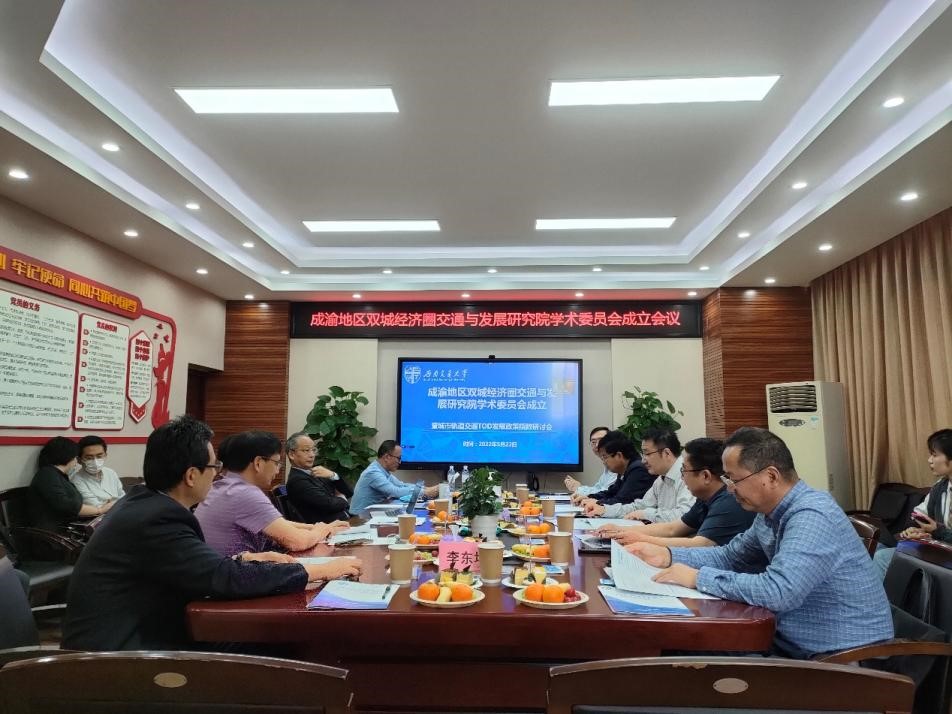 2022年5月22日上午,由太阳集团tcy8722主办的成渝地区双城经济圈交通与发展研究院学术委员会成立大会暨中国城市轨道交通TOD发展政策指数研讨会。