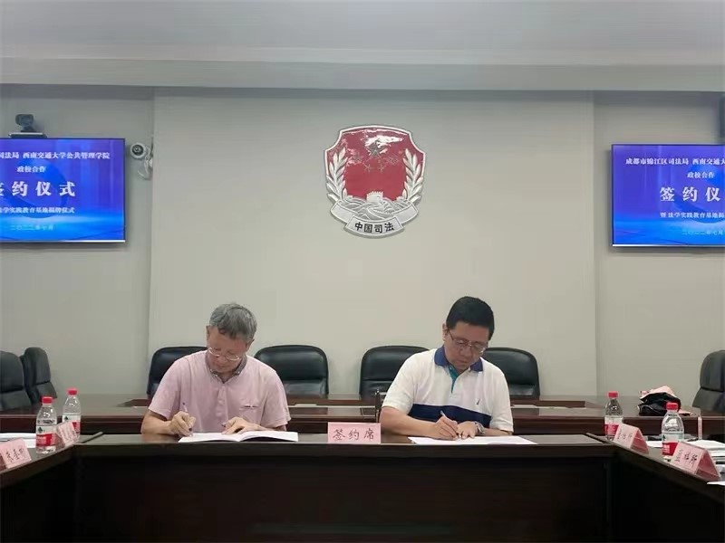 2022年7月11日下午13:30,我院与成都市锦江区司法局战略合作签约与挂牌仪式在锦江区司法局隆重举行。我院党委书记、《习近平法治思想概论》教学团队负责人高凡教授,院长王永杰教授、办公室主任王崇杰以及《习近平法治思想概论》教学团队成员朱奎彬、康黎、夏永梅老师共同出席签约仪式。