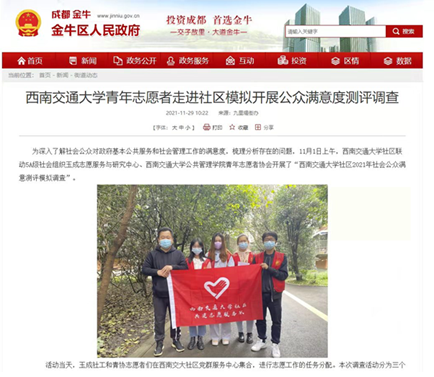 志愿者们走进社区模拟开展公众满意度测评调查