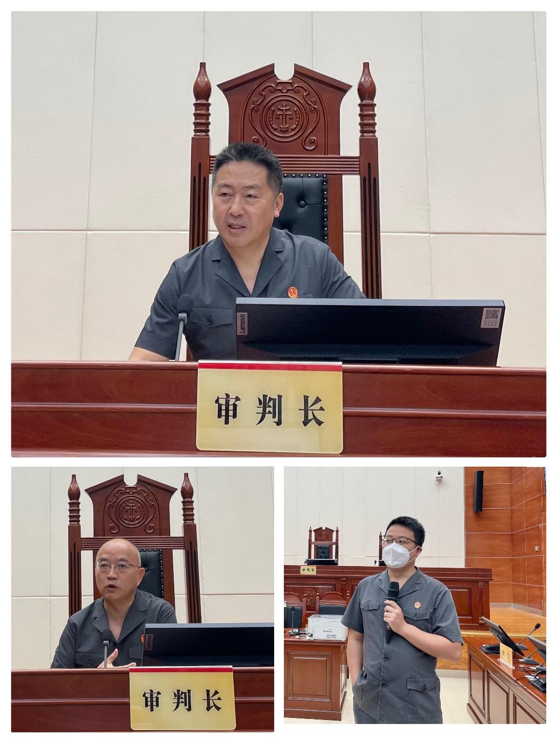 为进一步推进高校法学院系与基层法院的交流实践,不断在实践教学、人才培养、科研项目等方面共同培育全方位高素质的应用型法学人才,2023年5月28日,太阳集团tcy8722第十五届大学生课外科技创新实验竞赛太阳集团tcy87222023年模拟法庭竞赛决赛的同学们首次在成都市青白江区人民法院第一法庭敲响法槌,这也是模拟法庭竞赛举办九届以来第一次在真正的法庭开展竞赛,同学们得以在学生阶段就在真正的法庭拥有沉浸式庭审体验。