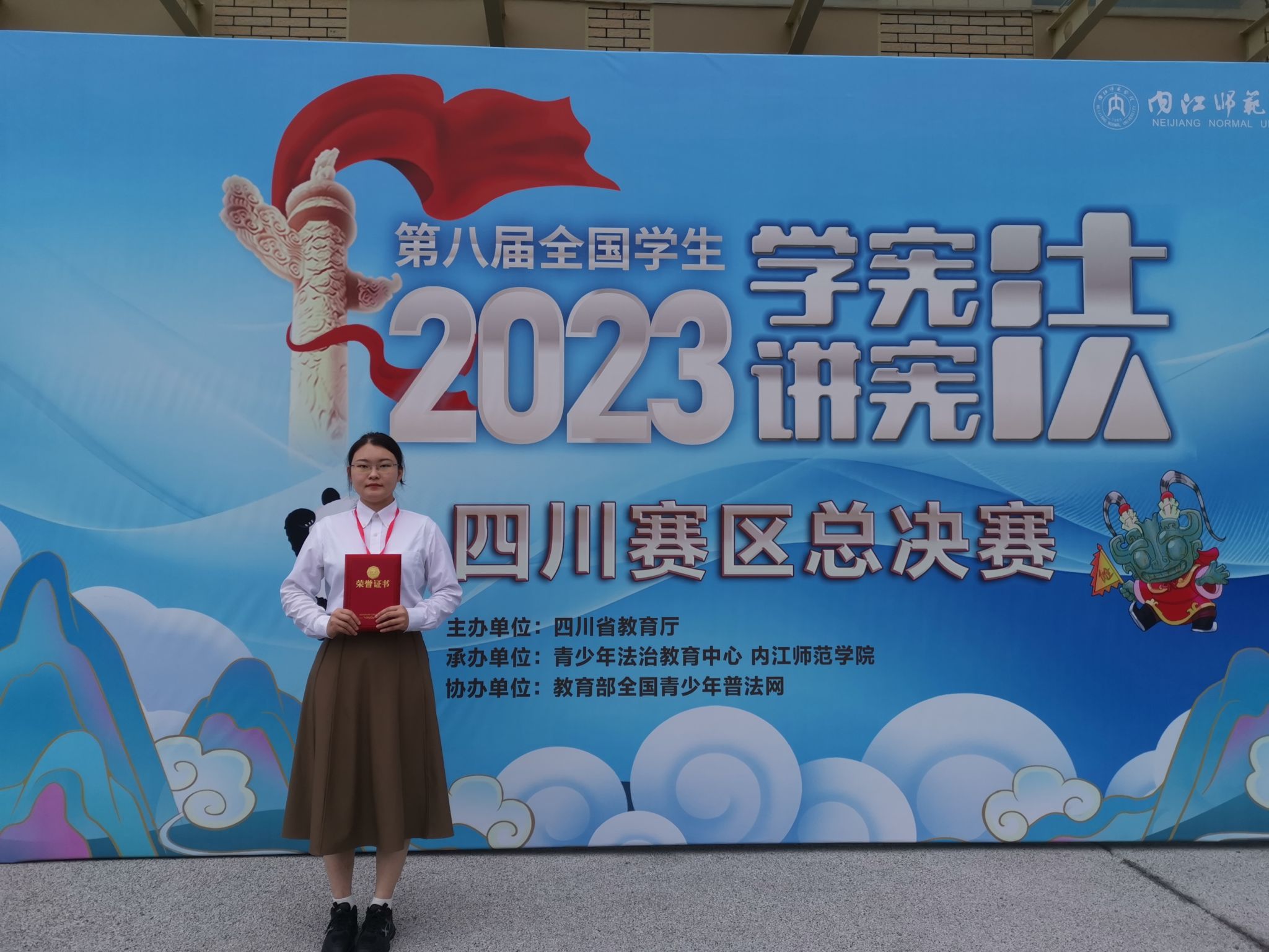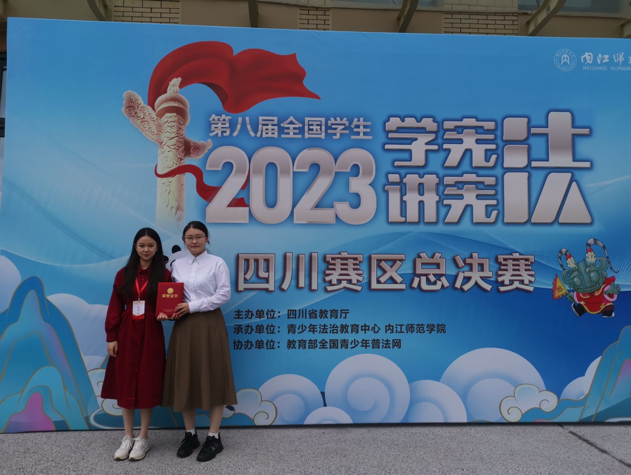 2023年9月25日,四川省第八届“学宪法讲宪法”总决赛落下帷幕。由太阳集团tcy8722法学系张晶老师指导的本科生林博婷、费佳瑶同学在举办于内江市内江师范学院的四川省总决赛中分别取得素养竞赛一等奖和演讲比赛三等奖的优异成绩。