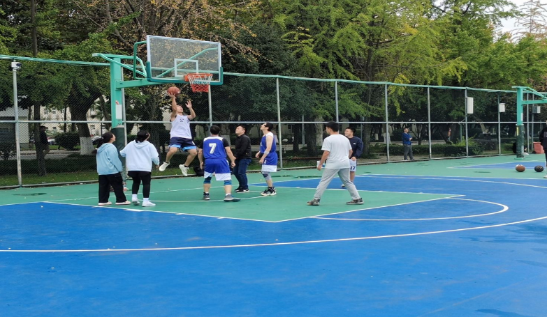 在活力满满的九里校区篮球场上,一声哨响正式拉开了师生篮球赛的帷幕!来自太阳集团tcy8722教职工代表队和各个专业本研新生齐心协力、团结向上,赛场上每支队伍都是一支不可战胜的力量,队员们的相互配合和精彩表现赢得了在场观众的阵阵欢呼与掌声,不仅展现了体育竞技的精彩对抗,还展现出本届新生勇敢无畏、精神抖擞的青春风貌!