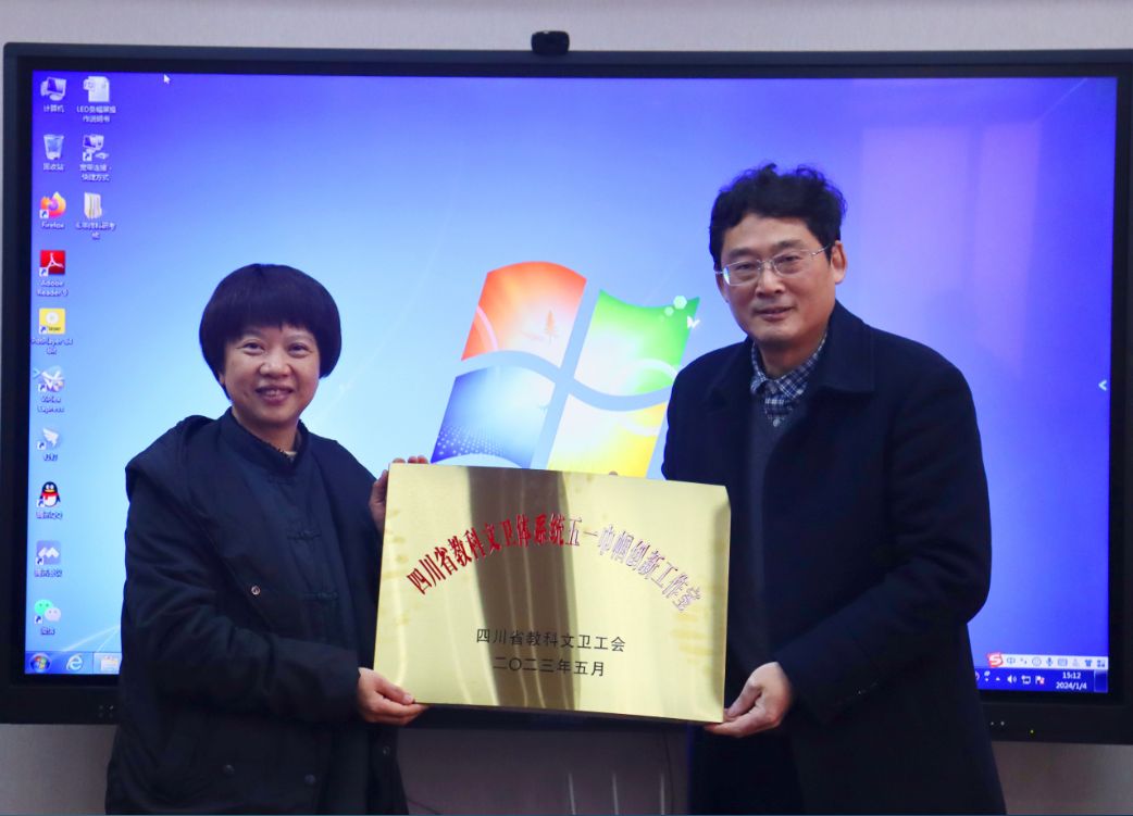 2024年1月4日下午,省教科文卫体系统首批“五一巾帼创新工作室”(共10个)授牌仪式在九里校区01212会议室举行,学校工会领导为我院获评的高凡创新工作室授牌。校工会常务副主席靳能法、副主席高磊、组织(女工)部部长陈秀梅老师莅临,学院党委书记高凡、院长王永杰、党委副书记薛婧、副院长彭川宇、部门工会主席王崇杰和教职工代表出席了授牌仪式。