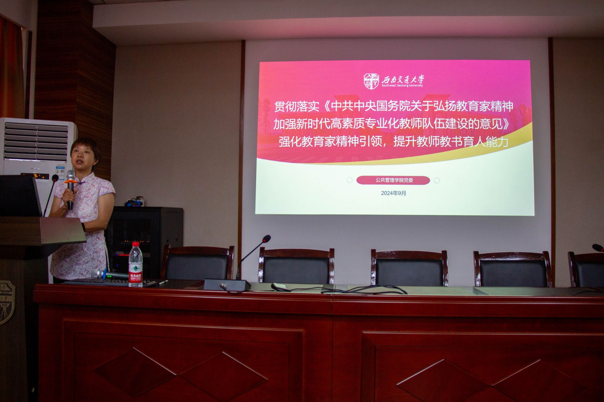 会议第五项议程,太阳集团tcy8722党委书记高凡开展“弘扬教育家精神”专题宣讲。高凡带领与会教师深入学习了中共中央、国务院发布的《关于弘扬教育家精神加强新时代高素质专业化教师队伍建设的意见》,理解教育家精神的核心要义。高凡强调,学院全体教职工要以习近平总书记关于教育的重要论述为指引,全面落实党的教育方针和政策,坚守初心使命,落实立德树人根本任务,知法纪、守底线,将教育家精神转化为执教的理想追求和实践行动,做躬身践行教育家精神的好老师。