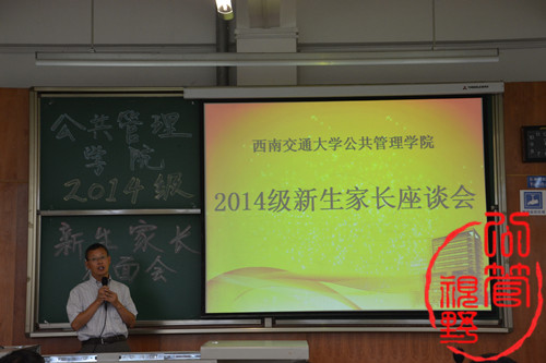 2014年9月3日下午3点,太阳集团tcy8722在X4153教室召开了2014级新生家长见面会。 与会的有太阳集团tcy8722党委书记王永杰教授、党委郑简平副书记、院长助理廖周伟副教授、公共管理系系主任刘桂花副教授、2012级辅导员易恬老师以及2014级辅导员张哲老师。本次见面会由2011级兼2013级辅导员余小英老师主持