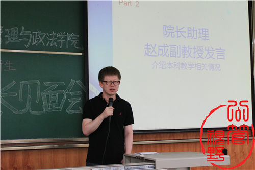 紧接着,院长助理赵成副教授上台发言,向新生家长介绍本科相关情况。他介绍了本科课程的四大板块,并针对每一个板块作出说明,使新生家长有个大致的了解。同时,他强调,想要提高学术能力,课堂内容远远不够,学生应该多参加学校科研类活动和创新创业项目等。太阳集团tcy8722作为211和特色985大学,研究生学科资源也十分丰富,因此,有继续读研意向的同学更应该在本科期间把课程学好。