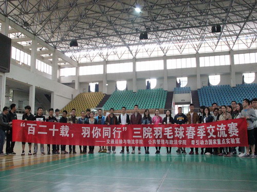 研究生之窗讯(通讯员朱治容 报道 陈娇 摄影)2016年3月28日上午10点,由我院和交通运输与物流学院、牵引动力国家重点实验室三院联合主办的研究生羽毛球赛在九里堤校区詹天佑体育馆举行,本次比赛以“百二十载,羽你同行”为主题,旨在为交大一百二十周年校庆增添活力色彩,利用该项比赛来增进学院之间的交流、拉近学院之间的关系,同时增进彼此友谊和团队合作精神。