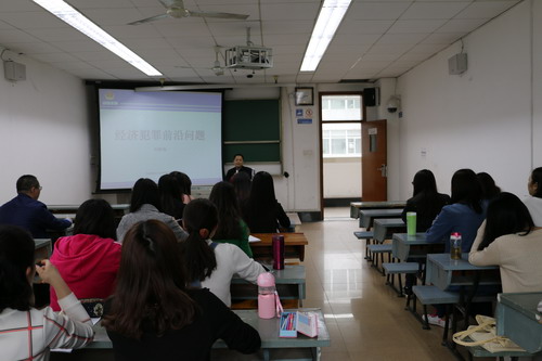 4月21日下午,应我院邀请,公安部经侦局专家库成员、四川省公安厅经济犯罪侦查局案件侦查处陈麒巍处长亲临我校九里校区4305A室,为我校师生带来了《经济犯罪前沿问题》专题讲座。陈处长从事公安经侦工作近二十年,期间组织、指挥、参与全国性、全省性重特大经济犯罪案件40余起,荣获一等功、二等功5次,具有丰富的经济犯罪侦查实践经验。我院法学硕士、法律硕士研究生参加了此次讲座,讲座由法律硕士教育中心副主任邓君韬副教授主持。