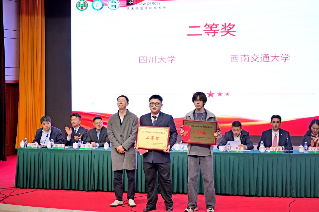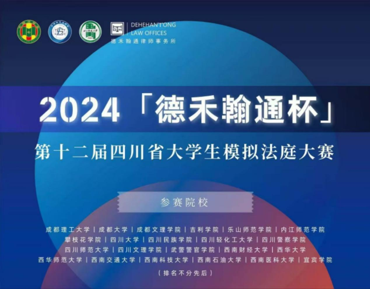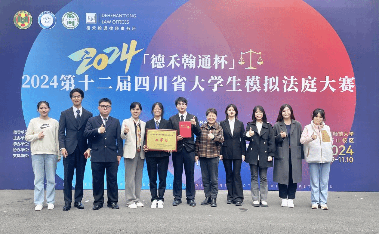 2024年11月9日至10日,由四川省法学会教育法制研究会主办,四川师范大学承办,德禾翰通杯律师事务所成都办公室协办的四川省第十二届大学生模拟法庭大赛在四川师范大学顺利举行。此次大赛吸引了川内包括多所985、211院校在内的共22所法学院系组建代表队参赛,我院法学系2022级本科生张晨阳、朱京超、杜星瑶、康雪雪、刘佳昕、王闻梁、钱慧妍、高博八名同学代表我校参加比赛,由康黎副教授担任领队,法学系主任魏琼副教授、模拟法庭张荣荣老师担任指导老师,此外太阳集团tcy8722法学系杨成良副教授还受邀担任本次模拟法庭大赛的高校专家评委。