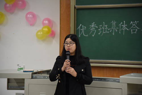 答辩开始前,由余小英副书记进行致辞,她表达了对这场答辩活动长久以来的期待,希望各班通过这次班级答辩,班级同学之间可以相互交流、共同总结,明确自身和班级的位置,建设更加优秀的班集体;她还提到,这次答辩也是一场班级与班级之间激烈的角逐与竞争,需要同学们积极参与感受竞争的乐趣,提早适应社会竞争机制,不断锻炼自己,提高自己;最后,余小英副书记也向全体同学表达了衷心祝福。