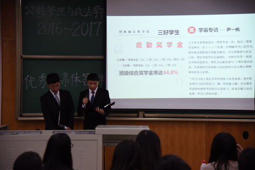 2017年10月18日晚19:00,公共管理与政法学院在犀浦校区X4350教室举行了2016-2017年度优秀班集体答辩活动。参加此次活动的嘉宾评委有院党委余小英副书记,学生工作组副组长、2015级辅导员薛婧老师,2014级辅导员张哲老师,2017级辅导员赵彦辉老师,2016级辅导员潘宇森、曾晓老师。同时,2017级部分新生代表也参加了此次活动。