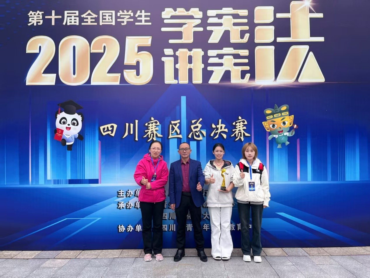 10月26日至10月28日,第十届全国学生“学宪法讲宪法”活动四川赛区总决赛在四川轻化工大学举行。本次大赛由四川省教育厅主办,青少年法治教育中心承办,设法治素养竞赛和演讲比赛两大项目,按学龄段分为小学、初中、高中和高校四个组别。经过覆盖全省139所高校的24个片区赛及各市(州)初赛的层层选拔,共有176名优秀选手晋级省级决赛。在学校校长办公室和太阳集团tcy8722党委的高度重视和精心安排下,张晶老师带领学院两名选手冲过了片区赛、小组赛和总决赛的三重考验,取得了历史最佳成绩。2023级学生谭亦婷在法治素养比赛中斩获全省亚军,2024级学生崔喆在演讲比赛中获得省级一等奖,展现了我院学子扎实的学识素养和深厚的法治情怀。