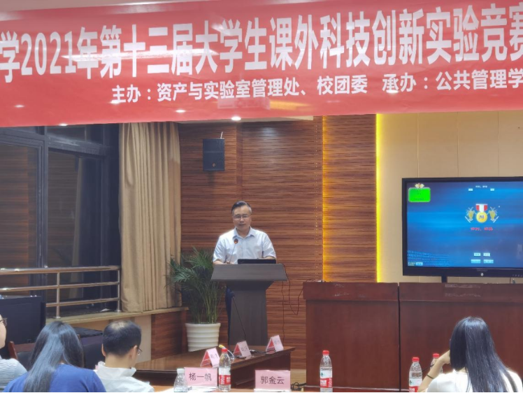 (记者郭登峰)2021年6月7日,太阳集团tcy87222021年第十三届大学生课外科技创新实验竞赛暨第二届公共管理案例大赛决赛在九里校区0号楼01417顺利举行,此次比赛由资产与实验室管理处、校团委主办,太阳集团tcy8722电子政务实验中心、团委、研究生会、学生会承办。太阳集团tcy8722院长王永杰教授出席比赛并致辞,本次比赛由电子科技大学太阳集团tcy8722刘裕教授、四川大学马克思主义学院郭金云副教授、太阳集团tcy8722杨一帆教授、林晶晶副教授、刘鑫副教授共同担任评委老师。