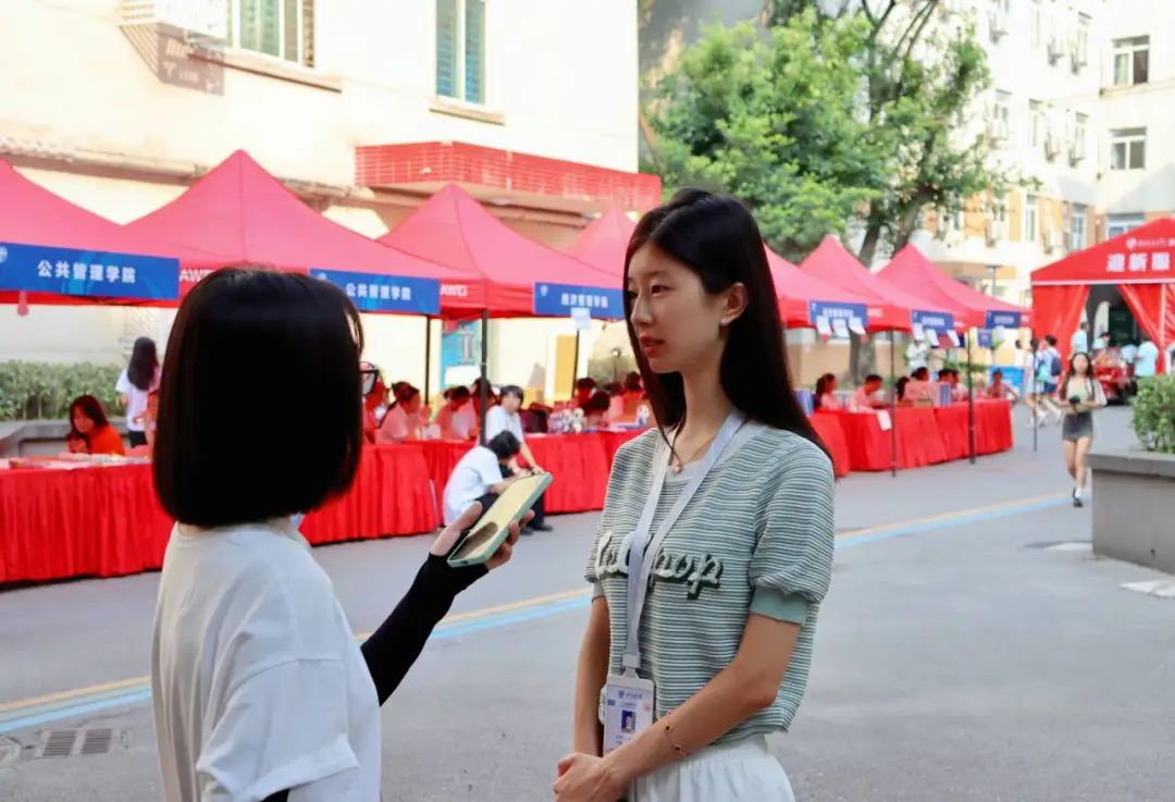 向记者介绍了学院为大一学子举办的四六级讲座等一系列具体活动