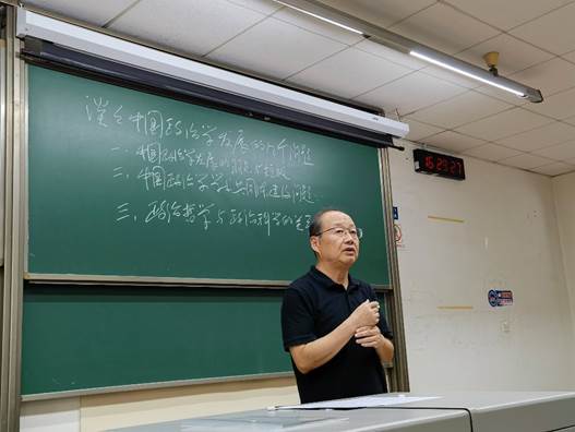 讲座以“谈谈当前政治学发展的几个问题”为题,下午四时许,讲座正式开始。房宁老师从当前中国政治学发展中存在的弱点和短板讲起,巧妙运用不同的音乐表现形式对问题进行总结:充斥“回旋曲”、缺少“交响曲”、难寻“引导曲”。 “成绩不说跑不了,缺点不说改不了。”他指出,当前中国政治学难以形成学术共识,反复讨论既有问题,造成了严重的学术资源浪费,“千舟竞发,百舸争流,中流而返”的局面令人感到担忧。同时还存在学术力量散乱、不能形成合力等问题,难以为社会提供指导性知识成果。