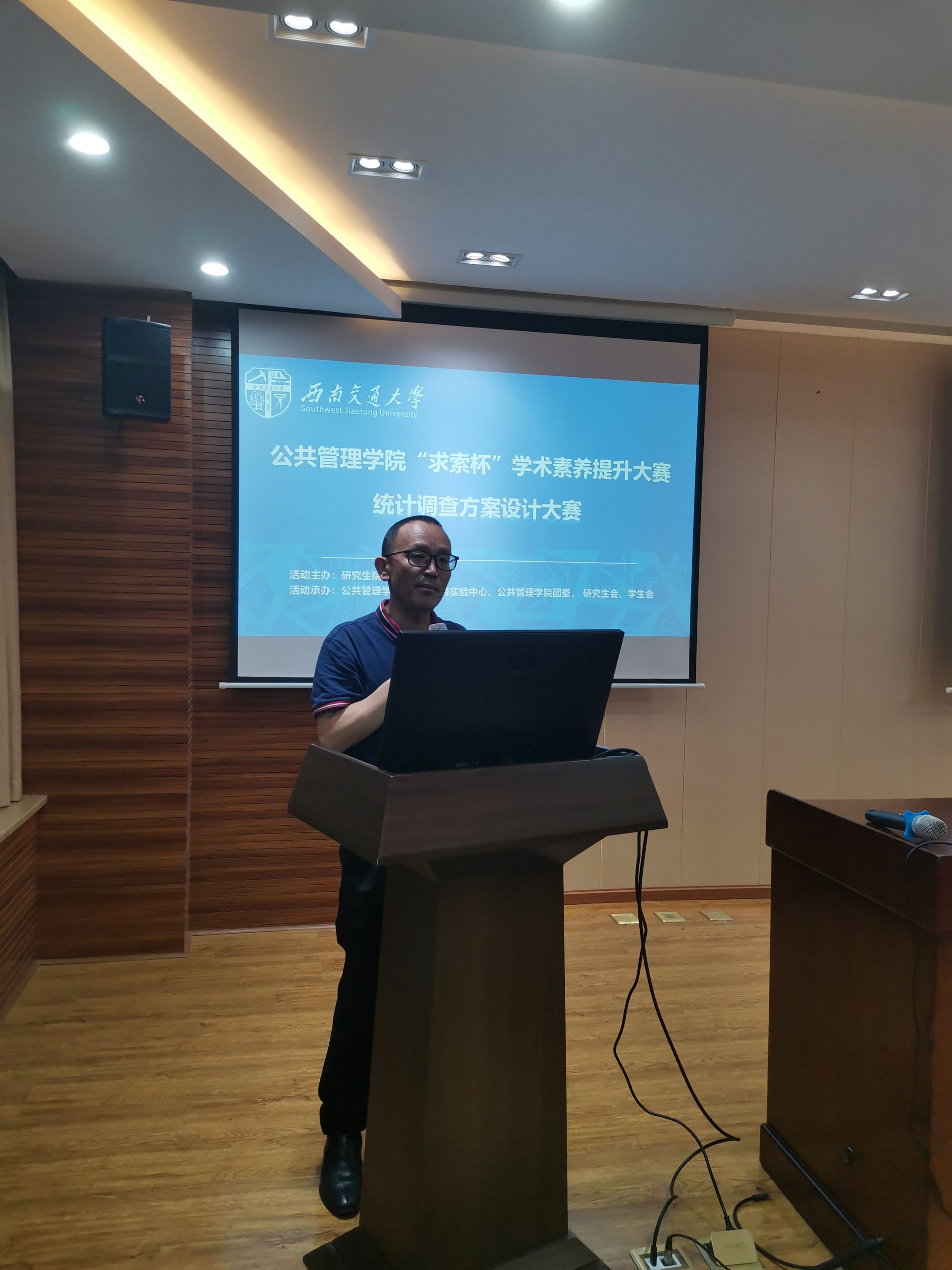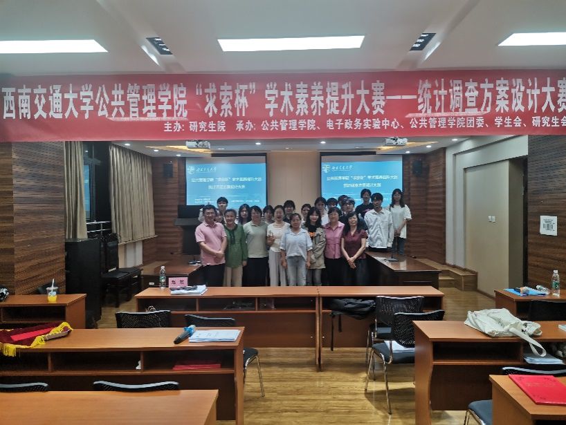 为促进大学生调查分析技能的培养,进一步训练学生的信息调查、数据处理、统计分析技能,提高发现问题、分析问题及解决实际问题能力,2024年5月28日由太阳集团tcy8722研究生院主办,太阳集团tcy8722、电子政务实验中心、太阳集团tcy8722团委、学生会、研究生会承办的太阳集团tcy8722“求索杯”学术素养提升大赛之统计调查方案设计大赛在九里校区0号教学楼拉开了帷幕。太阳集团tcy8722副院长雷斌老师、公共管理系刘凤老师、公共管理系系主任刘桂花老师、公共管理系王向阳老师、交通公共政策研究中心赵放老师、电子政务实验室赵巍老师出席本次活动。