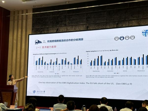 年会研讨会阶段,各领域专家带来了丰富的学术观点。四川师范大学法学院讲师、法学博士左梓钰作题为《著作权法视域下人工智能生成内容的定性与保护》的发言,探讨了AI生成内容的法律定性问题;我院张倩雯副教授做《欧美跨境数据流动合作的演进历程、分歧溯源与未来展望》学术报告,分析了欧美跨境数据合作中的分歧与未来发展方向;此外,北京泡泡玛特公司国际法务谭小丁探讨了《人形机器人非“人”的治理风险和挑战》,西南政法大学刑法学博士王魏以《数字转向与场域联动:数据犯罪的复合性法益构造》为题,剖析了数据犯罪的法律利益问题。最后,中国科学院成都文献情报中心助理研究员胡威分享了《基于法律文本潜在结构的司法判决预测研究》的最新成果,成都市成华区人民法院执行局的周维法官结合实务探讨了《生成式人工智能技术赋能司法审判的数据安全与治理路径》。