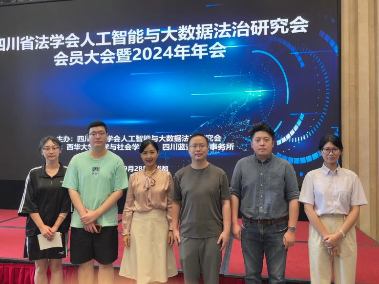 2024年9月28日,四川省法学会人工智能与大数据法治研究会在成都市武侯区翔宇宾馆顺利召开。本次会议聚焦人工智能与大数据背景下的法治建设,旨在促进学术交流,推动相关领域的法治研究及立法发展。我院院长助理邓君韬副教授、张倩雯副教授、张敖副研究员受邀参会,2024级法学硕士研究生张腾宇、2024级法律硕士孙键、刘朝霞随同参会学习。