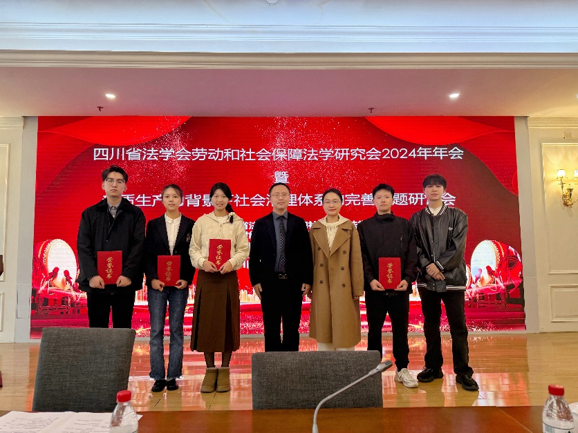 本次年会共有60余篇论文收录学术会议论文集,我院法学硕士研究生张腾宇与法律硕士研究生陈江涛完成的《灵活用工从业者职业伤害保障制度研究》荣获优秀论文评选三等奖;法学硕士研究生刘星宇与法律硕士研究生蒲淳完成的《新质生产力视域下工会在劳动保障中的功能优化》荣获优秀奖。