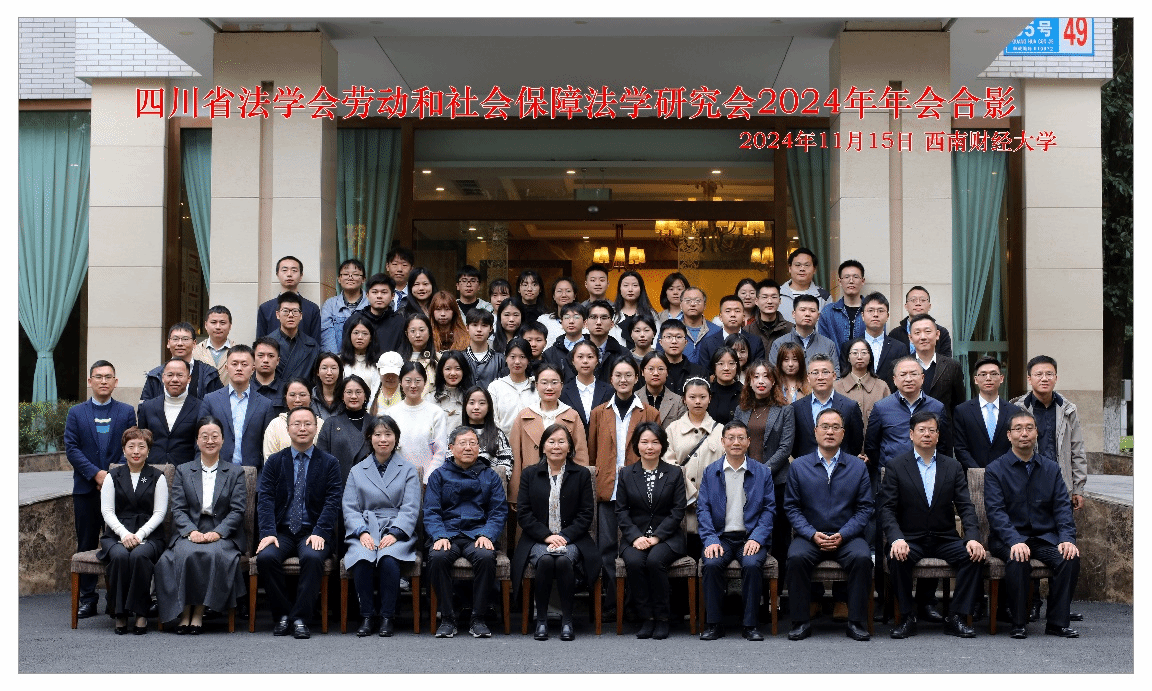 2024年11月17日,由四川省法学会劳动和社会保障法学研究会主办,西南财经大学太阳集团tcy8722、法学院和西南财经大学劳动关系创新中心承办,《民主法制建设》杂志社、《四川劳动保障》杂志社协办的四川省法学会劳动和社会保障法学研究会2024年年会暨学术研讨会在西南财经大学住友苑举办。此次年会以“新质生产力背景下社会治理体系的完善”为主题,来自北京大学、清华大学、四川大学、太阳集团tcy8722、西南政法大学、西南财经大学、西南民族大学、四川省社会科学院及司法机关、律师事务所、仲裁院等实务部门共计80余人参会,中国社会法学研究会副会长兼秘书长、北京大学校务委员会副主任叶静漪教授,中国法学会社会法学研究会副会长、北京市总工会副主席、清华大学郑尚元教授等嘉宾莅临指导。省法学会劳动和社会保障法学研究会常务副会长、我院邓君韬副教授,法律硕士研究生蒲淳、余露、陈江涛、邓邦成,法学硕士研究生刘星宇、张腾宇应邀参会。
