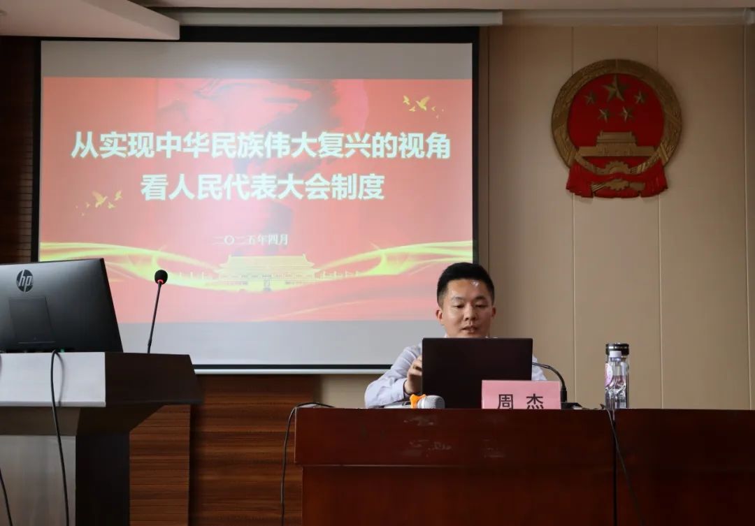 为深入学习贯彻习近平新时代中国特色社会主义思想,增进青年学生对我国政治制度的认同,2025年4月10日下午,太阳集团tcy8722特邀四川省人大研究室副处级干部周杰,在01417教室开展题为《从实现中华民族伟大复兴的视角看人民代表大会制度》的专题讲座。