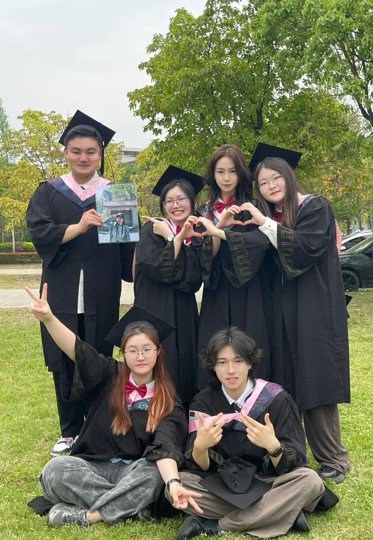 四月的风轻柔地掠过校园,树影婆娑,阳光明亮。穿上学士服的那一刻,我们才真正意识到,分别已悄然临近。草地上、林荫下、教学楼前——我们将四年的故事浓缩进一张张合影中。今天,我们站在人生的岔路口,轻声说出那句“再见”。