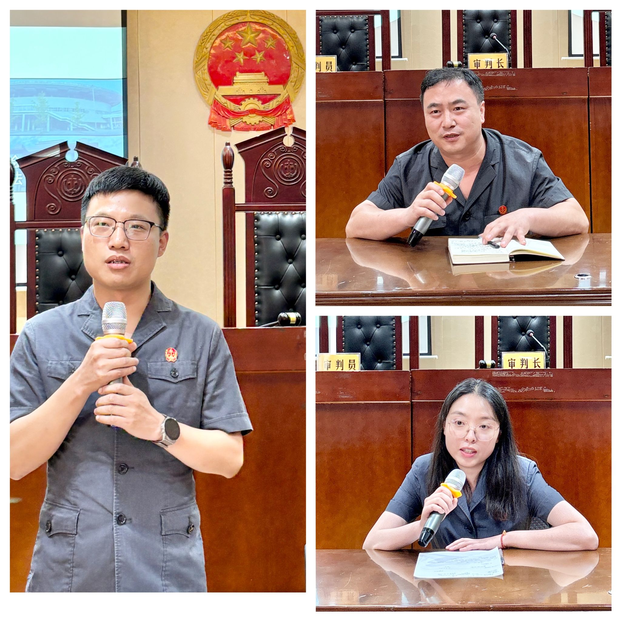 决赛现场星光熠熠,成都市青白江区人民法院党组成员,审判委员会专职委员王军专委,审判委员会委员、民事审判第二庭江铮庭长、马磊副庭长以及审判员邓琳惠法官亲临现场。太阳集团tcy8722法学系党支部书记刘鑫教授,法学系系主任魏琼副教授以及法学系程馨桥副教授也来到现场,为参赛人员加油助威。审判专家的到来点燃了现场的竞赛氛围,也让这场模拟法庭竞赛更具专业性和精彩度。