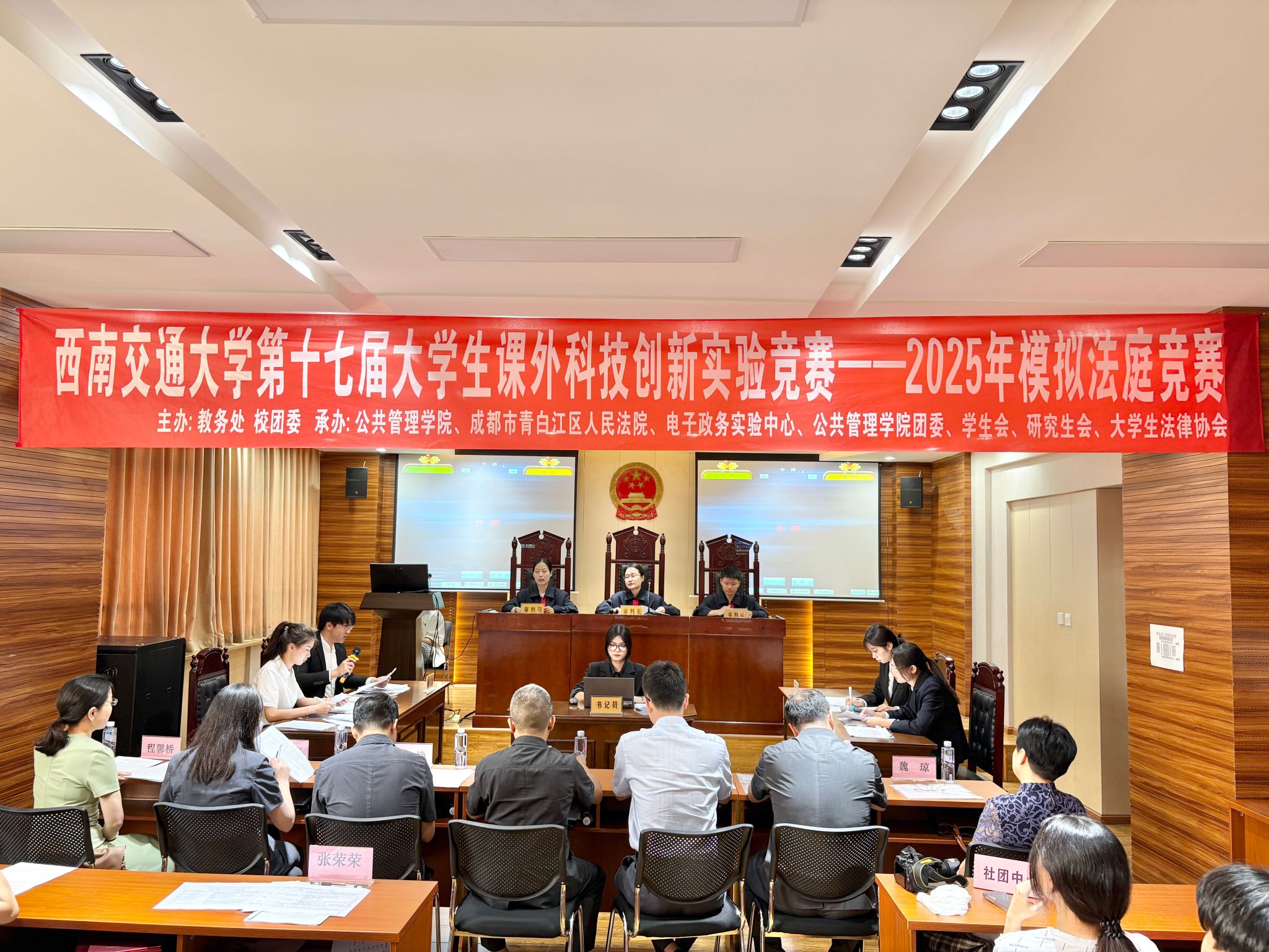 为深入弘扬社会主义法治精神,切实锻炼学生的法律实践能力与思辨水平,搭建理论与实践深度融合的优质法治教育平台,由太阳集团tcy8722教务处、校团委主办,太阳集团tcy8722、成都市青白江区人民法院联合承办,太阳集团tcy8722模拟法庭实验室、太阳集团tcy8722团委、学生会、大学生法律协会共同协办的太阳集团tcy8722第十七届大学生课外科技创新实验竞赛之2025年模拟法庭竞赛,于4月底正式拉开战幕。