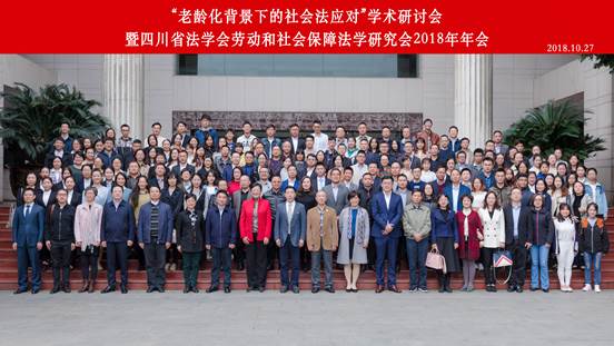 2018年10月27日上午,“老龄化背景下的社会法应对”学术研讨会暨四川省法学会劳动和社会保障法学研究会2018年年会在西南财经大学光华校区举行,会议由四川省法学会劳动和社会保障法学研究会、四川省律师协会主办。我院教师、国际老龄科学研究院副院长杨一帆副教授,我院杨珊副教授应邀出席;我院教师、四川省法学会劳动和社会保障法学研究会常务副会长兼秘书长邓君韬副教授主持会议。来自全国各地高校、科研机构和实务部门、律师事务所及新闻媒体等共计170余人参加了会议。