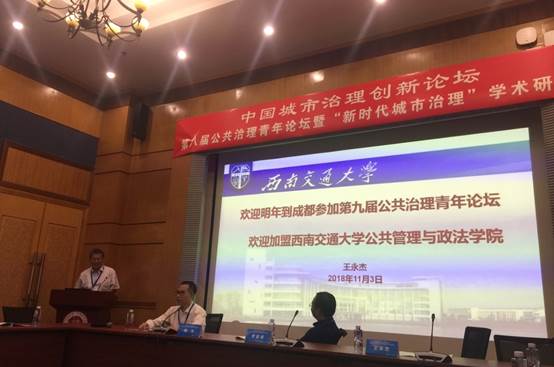 此次学术研讨会分共分为两个部分,分别包括八个青年论坛和五个研究生论坛,王永杰院长参加的是公共治理青年论坛(二),交流的主题是《我国社区治理创新研究知识图谱分析——基于CNKI论文(2000-2018)》。彭川宇副教授参加的是公共治理青年论坛(八),交流的主题是《智慧城市视角下智慧政务感知质量研究》。颜学勇老师参加的公共治理青年论坛(三),交流的主题是《生活政治视野下的城市治理转型》。我院2017级研究生王秦雨函参加的是公共治理研究生论坛(三),交流的主题是《基于Python文本分析的海绵城市政府政策解读与对策研究》。通过与国内青年专家学者的学术思维碰撞,,我院师生代表对公共管理这一领域学术前沿的有了更进一步的了解和认识,此次参会对于扩大学院对外交流空间,提升学院对外学术交流和师生的研究能力具有重要价值作用。