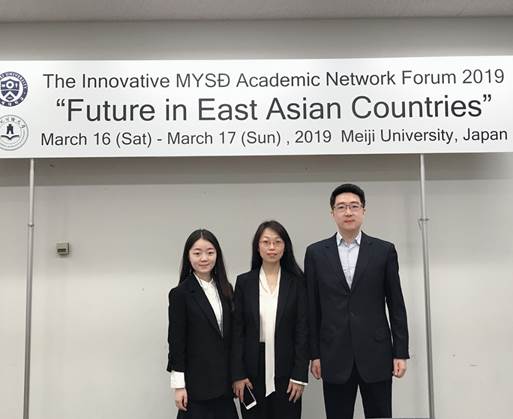 2019年3月16-17日,我院院长助理彭川宇副教授、刘鑫老师、代佳欣老师受学院委派,赴位于日本东京的日本明治大学参加主题为“Future in East Asian Countries”的The Innovative MYSD Academic Network Forum 2019国际学术会议。本次会议由日本明治大学主办,韩国延世大学、东北财经大学和太阳集团tcy8722共同参与,日本明治大学教务主任、国际交流委员会委员长武田巧教授、政治经济学部部长小西德应教授、政治经济学部教务主任加藤久和教授等日方学者对我院教师的来访表示热烈欢迎。