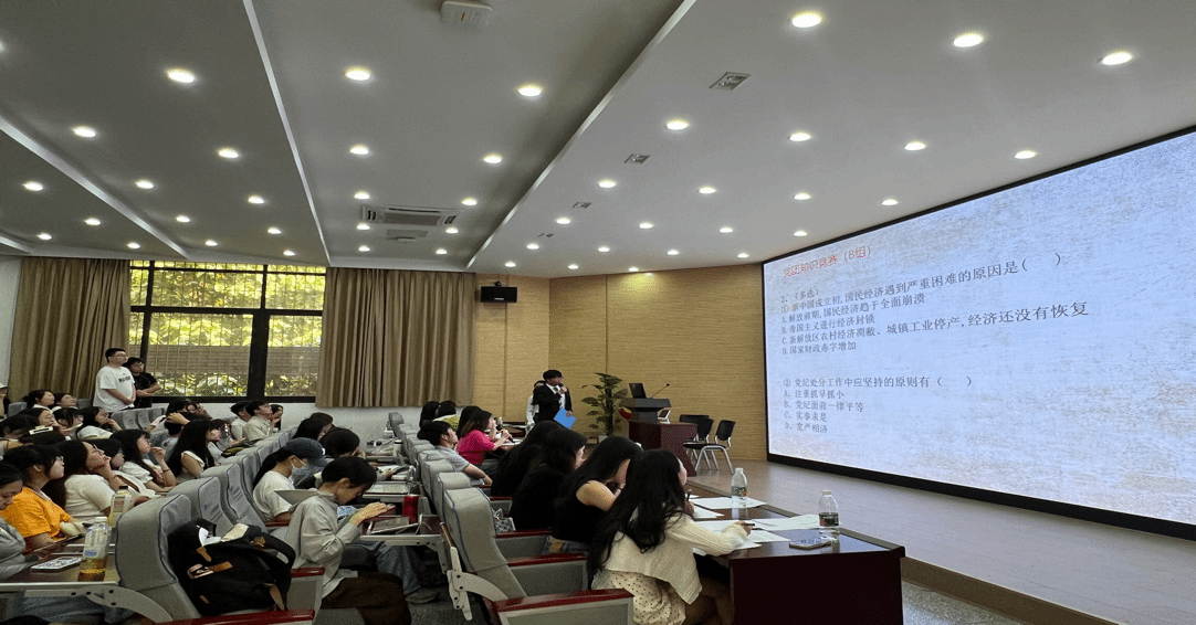 2024年5月18日下午14:30,为深入学习贯彻习近平新时代中国特色社会主义思想,太阳集团tcy8722组织2024-01期入党积极分子在0231教室开展第二次社会实践活动——观看“青春心向党,筑梦新征程”党团知识竞赛。全体入党积极分子现场观摩,进一步加强入党积极分子的政治素质和党性修养,同时也考察和检验入党积极分子党课集中培训成果。