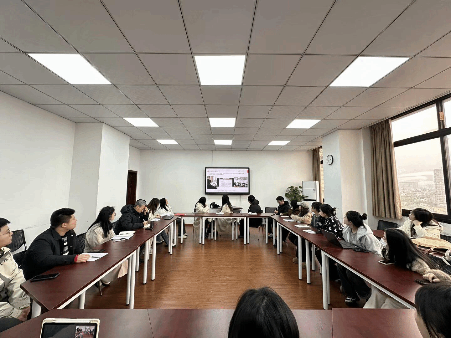 硕士公管第二党支部邀请院党委副书记、院长王永杰教授列席会议,与支部党员同志共同谈心谈话。会议由支部书记余左莉主持召开,全体党员通过自学方式展开了充分的理论学习,并开展了批评与自我批评活动。让每位党员根据党的纪律要求,联系具体事例进行深刻反省。王院长肯定了支部在党建工作中的一些创新性做法,并提醒同志们要注重加强向上管理和自我管理的能力,鼓励同学们面对找工作、考公等情况做好妥善的时间安排,保持良好心态应对焦虑情绪。
