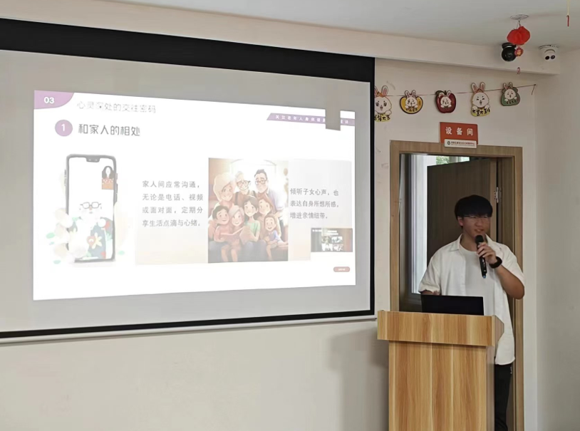 活动首先以一场温馨的心理健康讲座拉开序幕。志愿者们通过生动有趣的案例和深入浅出的讲解,向老人们普及了心理健康的重要性,告诉他们在日常生活的情绪体验和人际关系等方面需要格外注意。而要维持积极健康的心理状态,就需要老人们看一看生活之美,聊一聊舒心之事。为此,志愿者们给老人们提供了多种保持心理健康的方法,聊聊天、赏赏花,抑或悠悠地走在成都街头,许多烦心事便可自己消散。通过不同的调节方式保持心理健康,以乐观向上的心态迎接每一天。