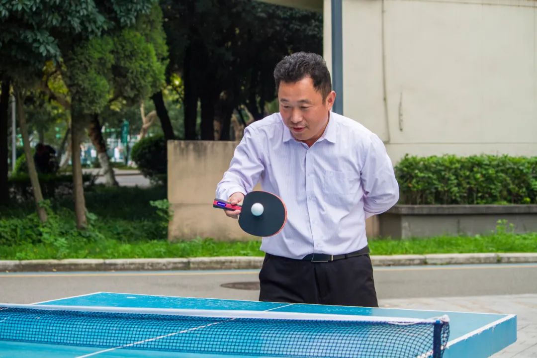 在10月24日的师生友谊赛中,学院教职工代表和2024级新生代表相对而立,全神贯注。球桌上,小小的乒乓球如同被赋予生命,在空中飞速穿梭,每一次与球拍的撞击都伴随着清脆的“啪”声,激发出不同的旋转和速度,让比赛充满了变数与惊喜。双方步伐灵活,或快速侧移,或迅猛扣杀,每一次攻防都展现着高超的技巧与战术。小小的乒乓球传递着浓浓的师生情,拉近了彼此的距离。