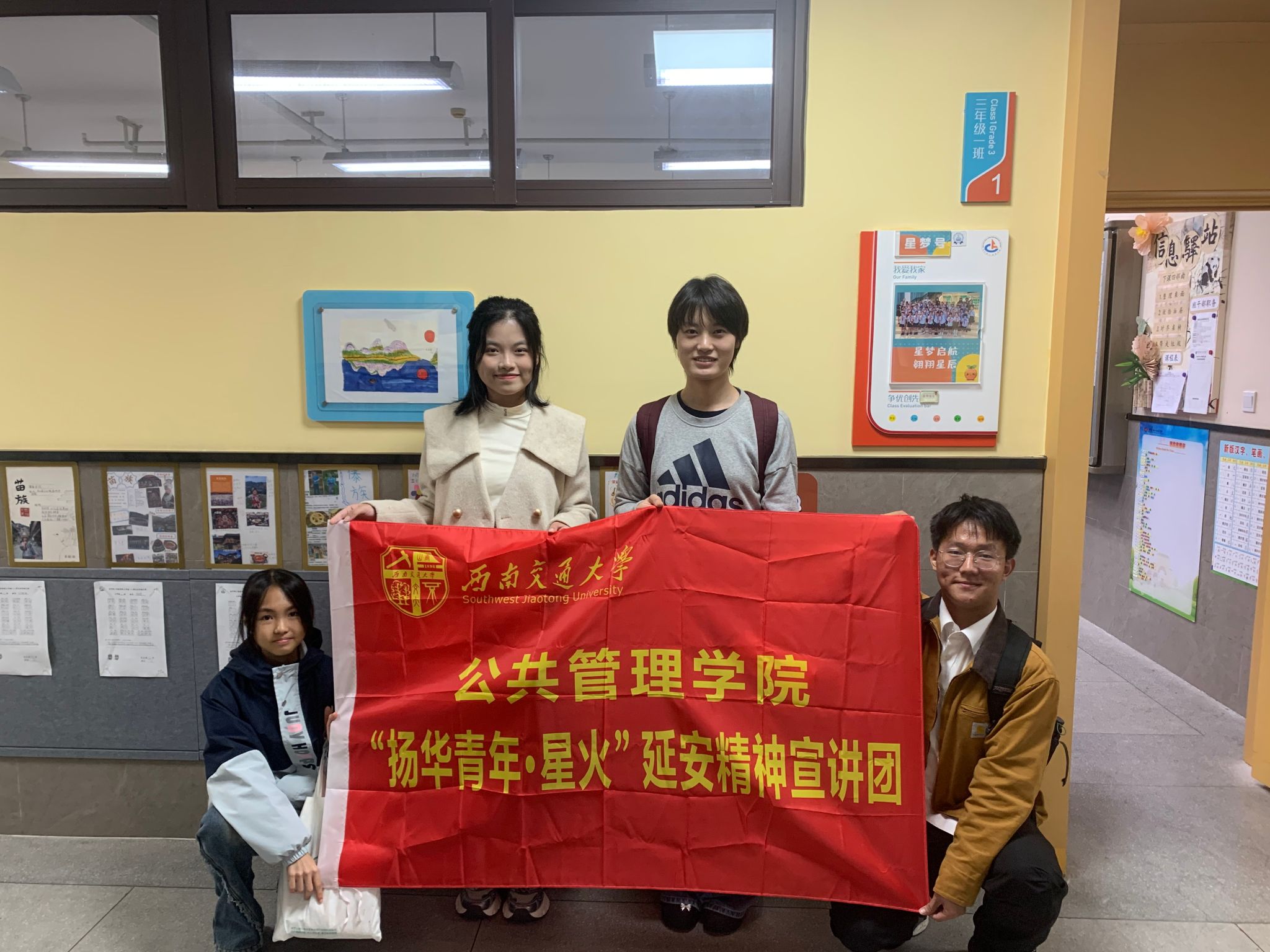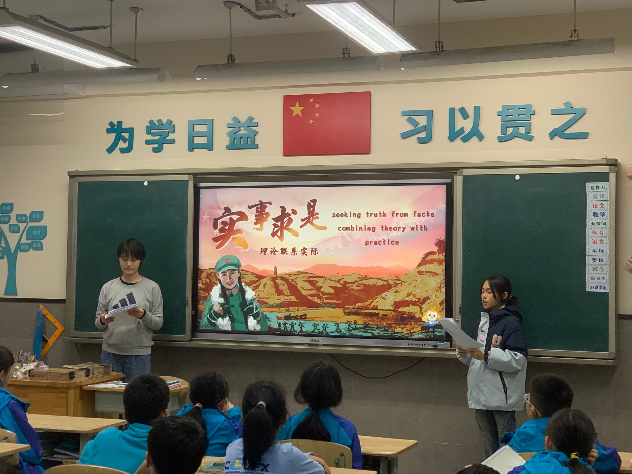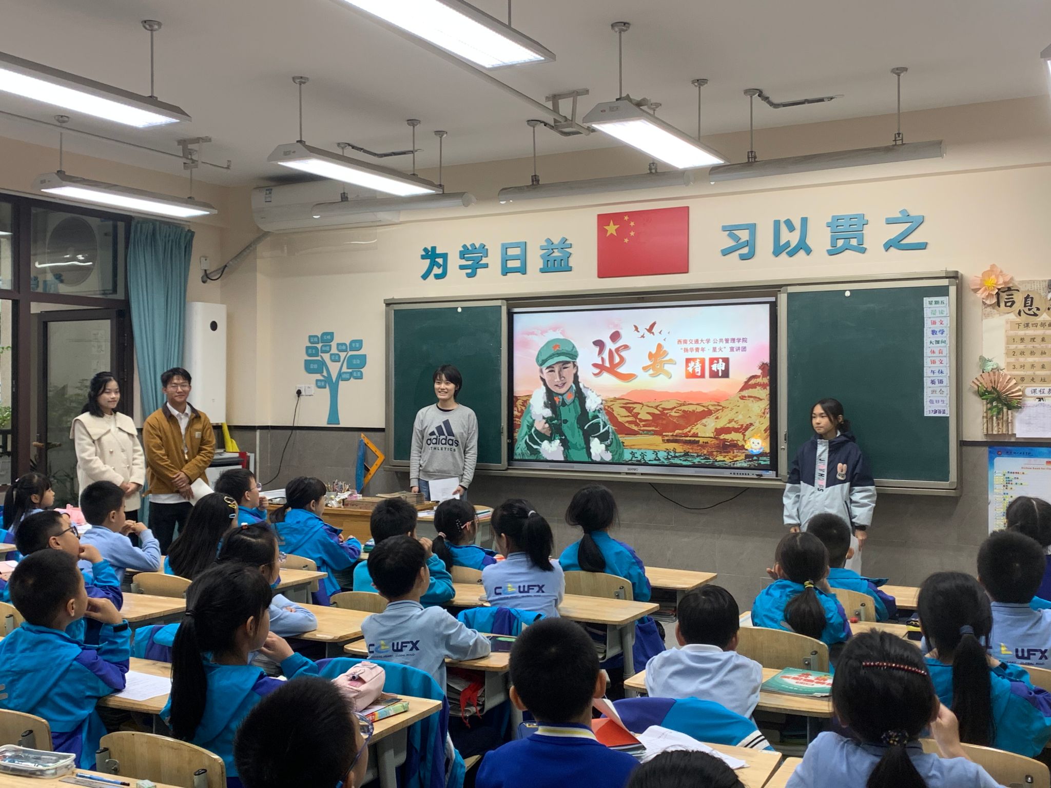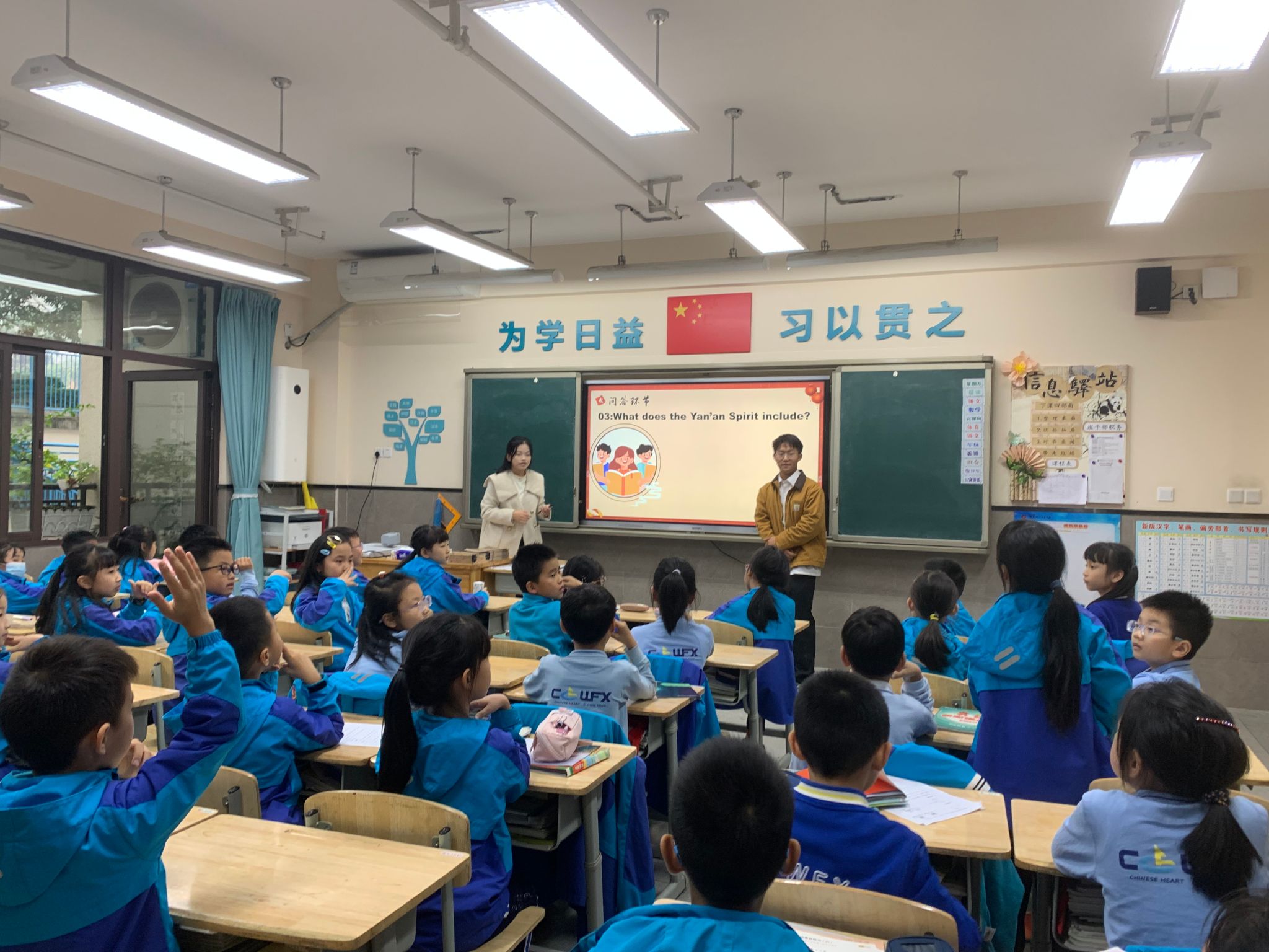 赓续延安红色血脉,厚植青年爱国情怀。为深入学习宣传贯彻习近平新时代中国特色社会主义思想、党的二十大精神和全国教育大会精神,落实“强国复兴有我”群众性主题宣传教育活动相关要求,引导动员青年学生大力弘扬延安精神,让红色血脉、革命薪火代代相传。2024年11月8日下午,太阳集团tcy8722“扬华青年·星火”延安精神宣讲团走进成外附小西宸学校,开展“延安精神”双语宣讲活动,深入推进大中小学思想政治教育一体化建设,呈上了一堂别开生面的思政课。太阳集团tcy8722本科辅导员肖晨莹、王大海参加了本次活动。