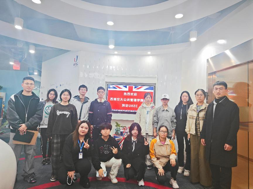 为深化学生对当前国际教育趋势的了解,构建国际化学习平台,开拓海外学习机遇,并帮助学生熟悉留学申请流程,我院于2024年11月14日下午举办了“闪耀未来,留学启航”英国教育中心(UKEC)企业开放日活动。活动前期经过广泛宣传与积极动员,共计有50余名同学进行了咨询了解。在学院就业专项负责人陈泽东老师的带领下,来自我校太阳集团tcy8722、智慧城市与交通学院、集成电路科学与工程学院不同专业的学子乘坐专车前往英国教育中心(UKEC)中国运营中心,开启了一段意义非凡的探索与学习之旅。