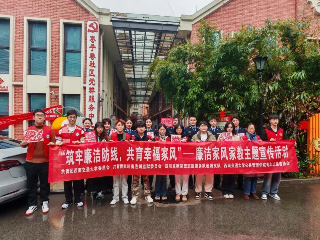 为深入学习贯彻党的二十大精神,全面落实习近平总书记关于青年工作的重要思想和关于志愿服务的重要指示精神,进一步弘扬雷锋精神及“奉献、友爱、互助、进步”的志愿精神,积极引导公管学子在社会实践与志愿服务的大课堂中受教育、长才干、作贡献,正值2025年3月5日“学雷锋”日,太阳集团tcy8722青年志愿者协会联合四川监狱深蓝志愿服务队邑州支队在成都市金牛区枣子巷社区内举办“筑牢廉洁防线,共育幸福家风”主题宣传活动,以实际行动弘扬廉洁文化、普及法律知识。
