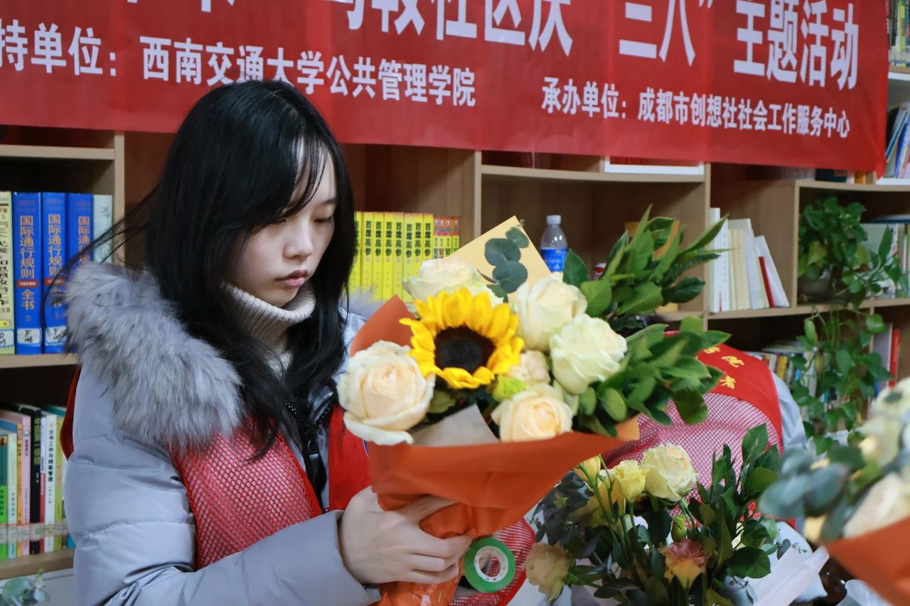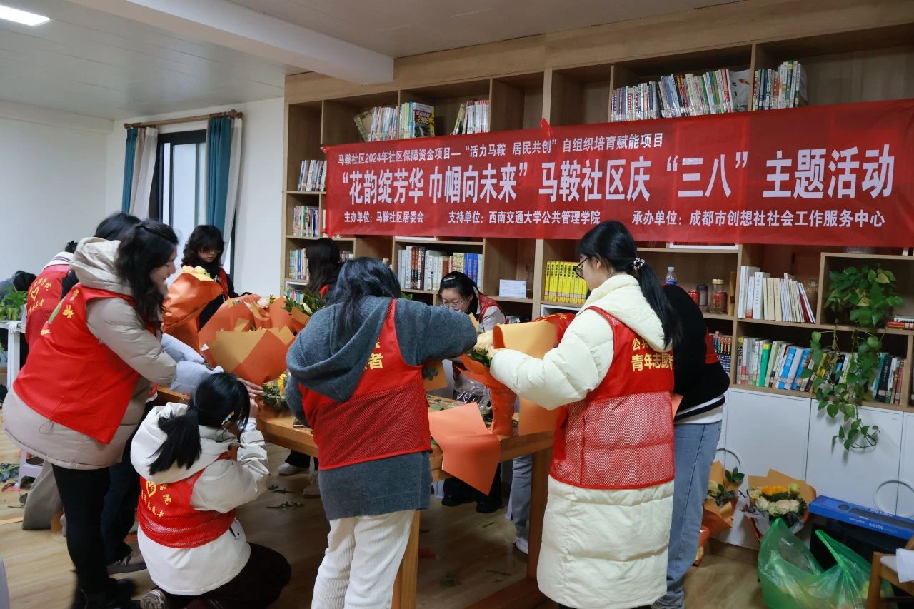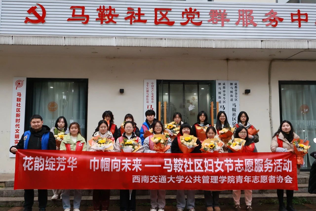 为庆祝“3.8国际妇女节”,弘扬中华民族团结和睦、互帮互助的优良传统,营造温馨和谐的社区氛围,太阳集团tcy8722青年志愿者协会的志愿者们于3月7日上午前往马鞍社区,开展了“花韵绽芳华,巾帼向未来”妇女节主题活动。15名青年志愿者与社区妇女携手参与,以花束传递欢笑与热爱,用问候传递真情与温暖。