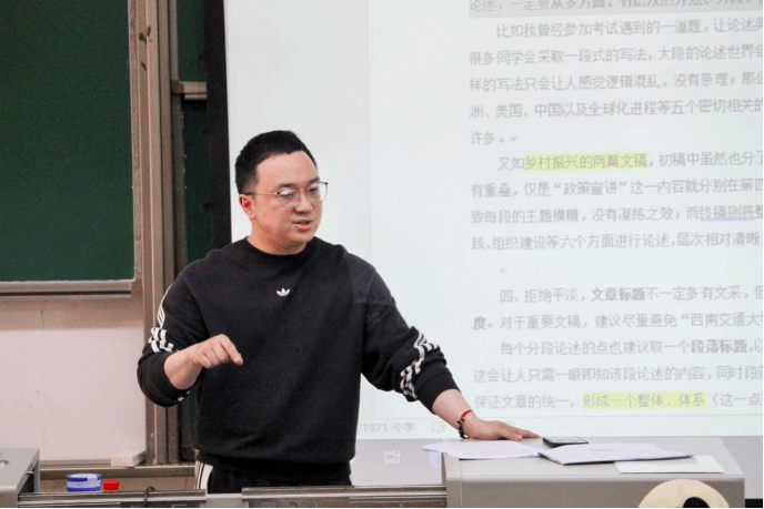 为充分发挥全媒体时代宣传工作的先行先导作用,营造良好的宣传环境和舆论氛围,进一步提升学生新闻素养和创新能力,提高学生新闻宣传工作水平,太阳集团tcy8722邀请物理科学与技术学院团委书记、学工组副组长雍腾老师为我院学生新闻宣传骨干开展以“用好叙事‘六要素’,从讲故事的角度‘讲’新闻”为题的培训活动,培训于2024年3月28日下午在九里校区4210教室举行。太阳集团tcy8722新闻中心、学生会、研究生会、青年志愿者协会、团建中心、党建中心负责宣传工作的学生骨干,各班宣传委员,以及学生等共计一百五十余人参加了培训。