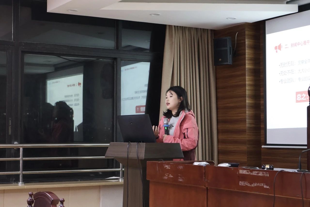 活动开始,徐梦莹老师率先登台,向各位新部员表示了诚挚的欢迎,接着进入正题,条分缕析地向新成员们介绍新闻中心应该干什么、能收获什么。徐老师指出,新闻中心是“无时无刻”、“无处不在”的“专业团队”,是肩负重任的学院“门面”;而在新闻中心的大家庭,严谨的工作态度、拔高的专业能力都等待着各位在学习与交流中不断探索和收获。