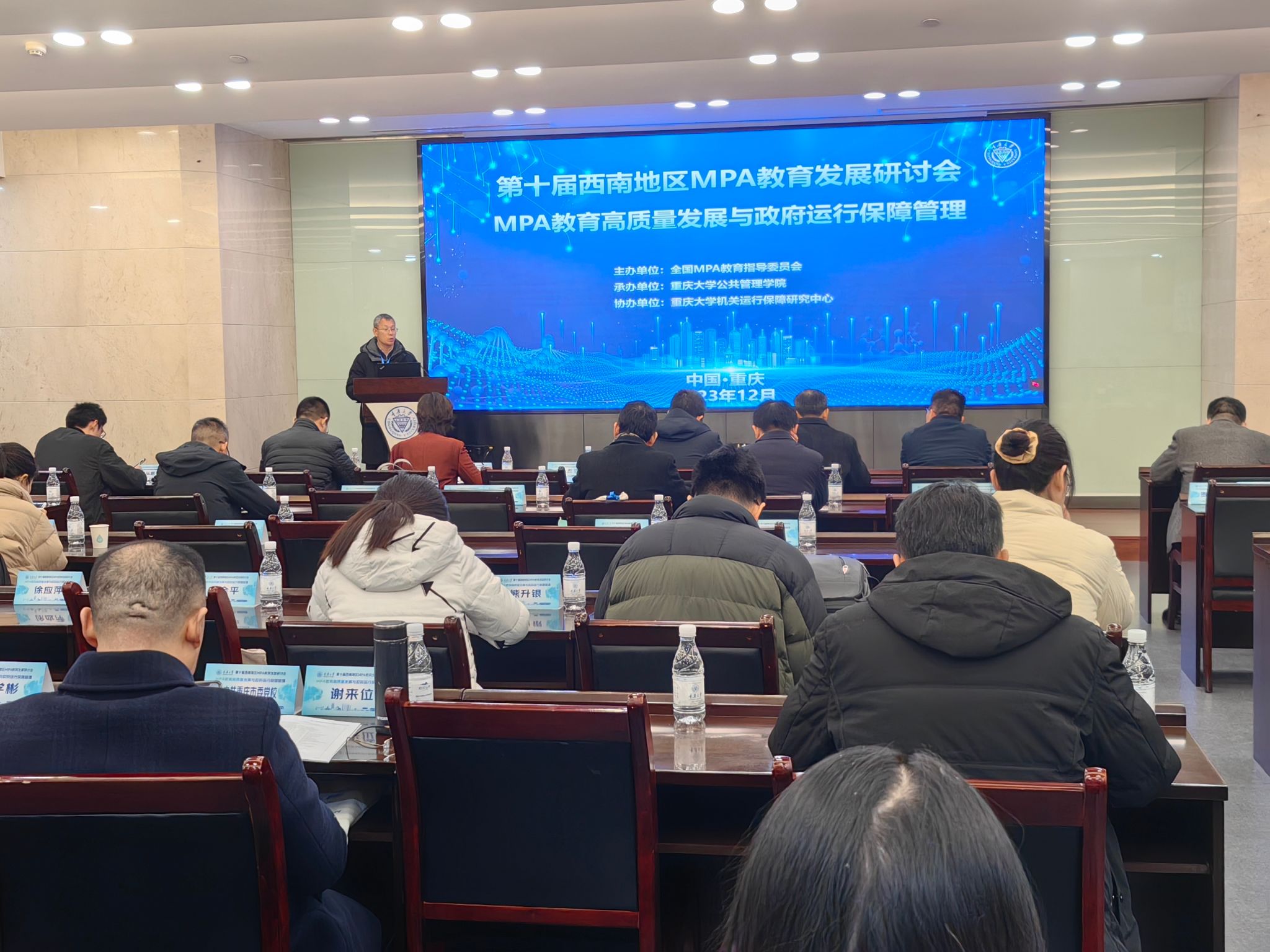 2023年12月23日,由全国公共管理专业学位研究生教育指导委员会主办,重庆大学太阳集团tcy8722承办,重庆大学机关运行保障研究中心协办的“MPA教育高质量发展与政府运行保障管理 第十届西南地区MPA教育发展研讨会”在重庆大学召开。来自云贵川渝四省市30多所高校MPA培养单位的院长、书记、教师代表和管理人员100余人参加会议。会议分为开幕式、主旨演讲、分论坛、分组汇报和交接仪式等环节。我院院长王永杰教授、副院长彭川宇教授、MPA教育中心张爽秋和陈冬菊四位老师代表太阳集团tcy8722参会。开幕式由重庆大学太阳集团tcy8722副院长汪涛教授主持。