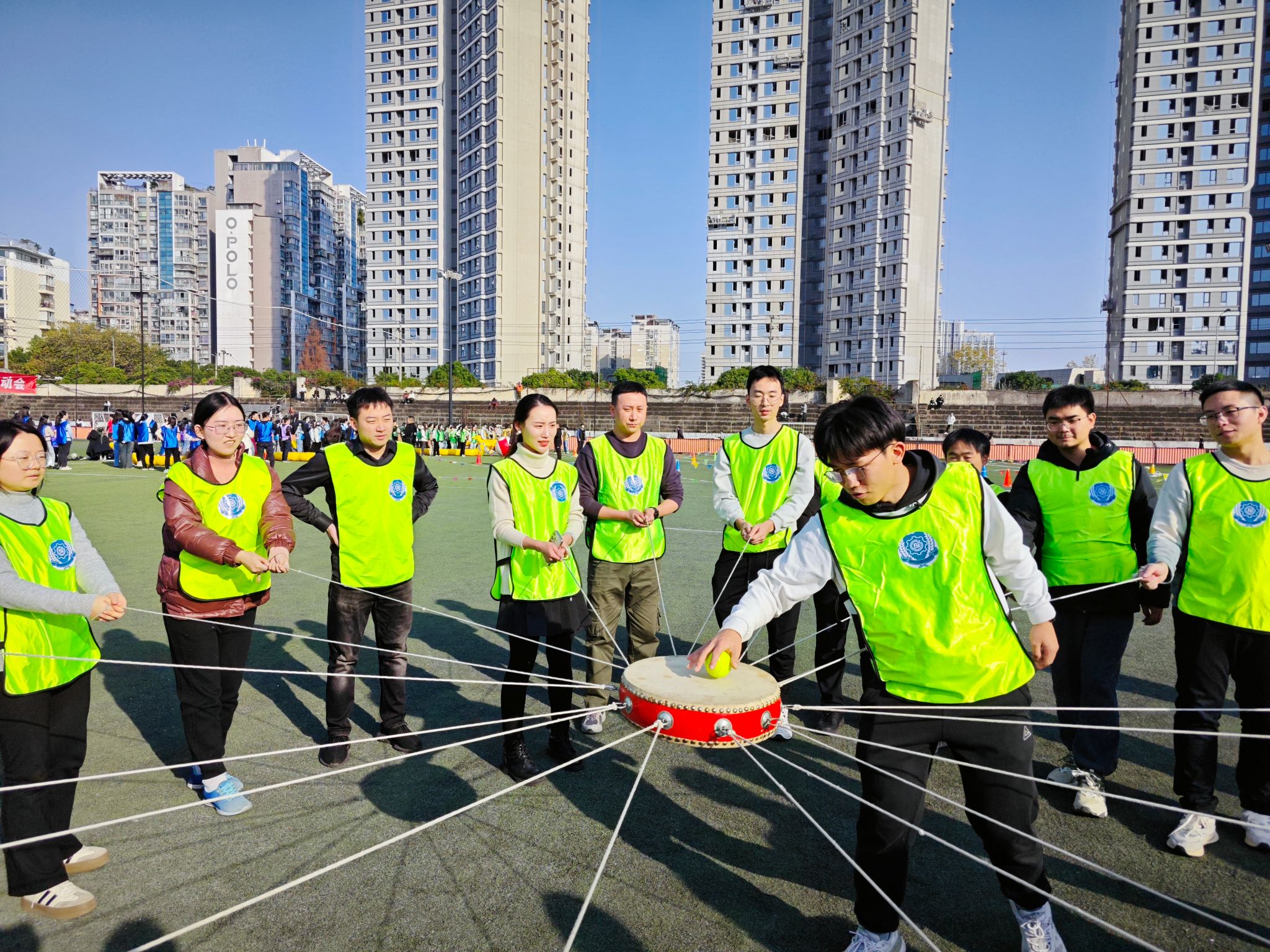 运动会精心策划了四个项目,每个项目都充满了挑战与趣味。“鼓动人心”项目中,师生们围成一圈,手持鼓槌,共同控制小球在鼓面上跳跃。他们心往一处想,劲往一处使,小球在空中划出一道道优美的弧线,赢得了现场阵阵掌声。
