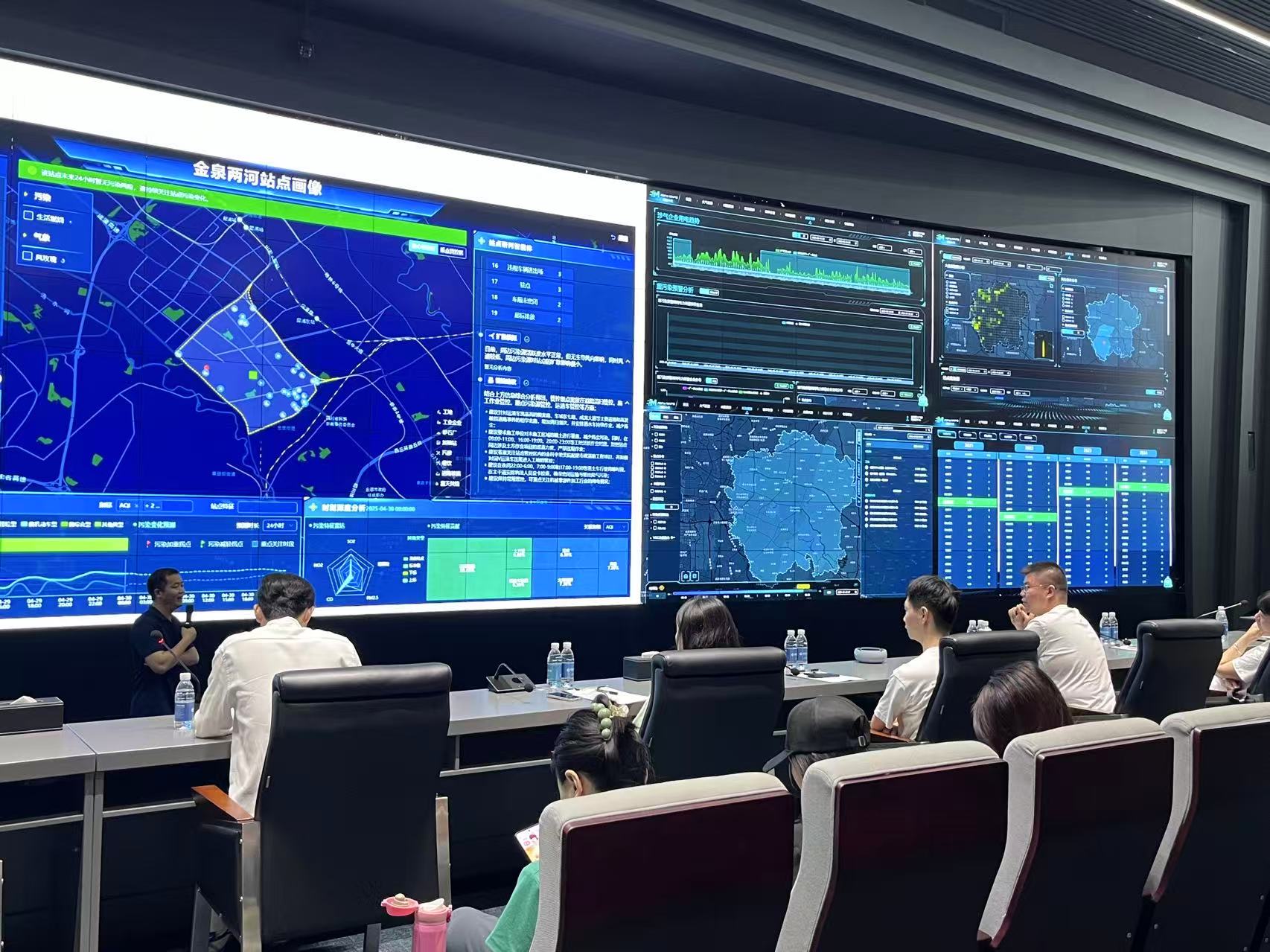 随后,同学们就自己感兴趣的话题与监管中心工作人员进行积极探讨,工作人员耐心解答的同时,还分享了成都经开区依托系统实现非现场执法、智能识别污染源的成功经验,让同学们直观感受到科技赋能公共管理的强大力量。