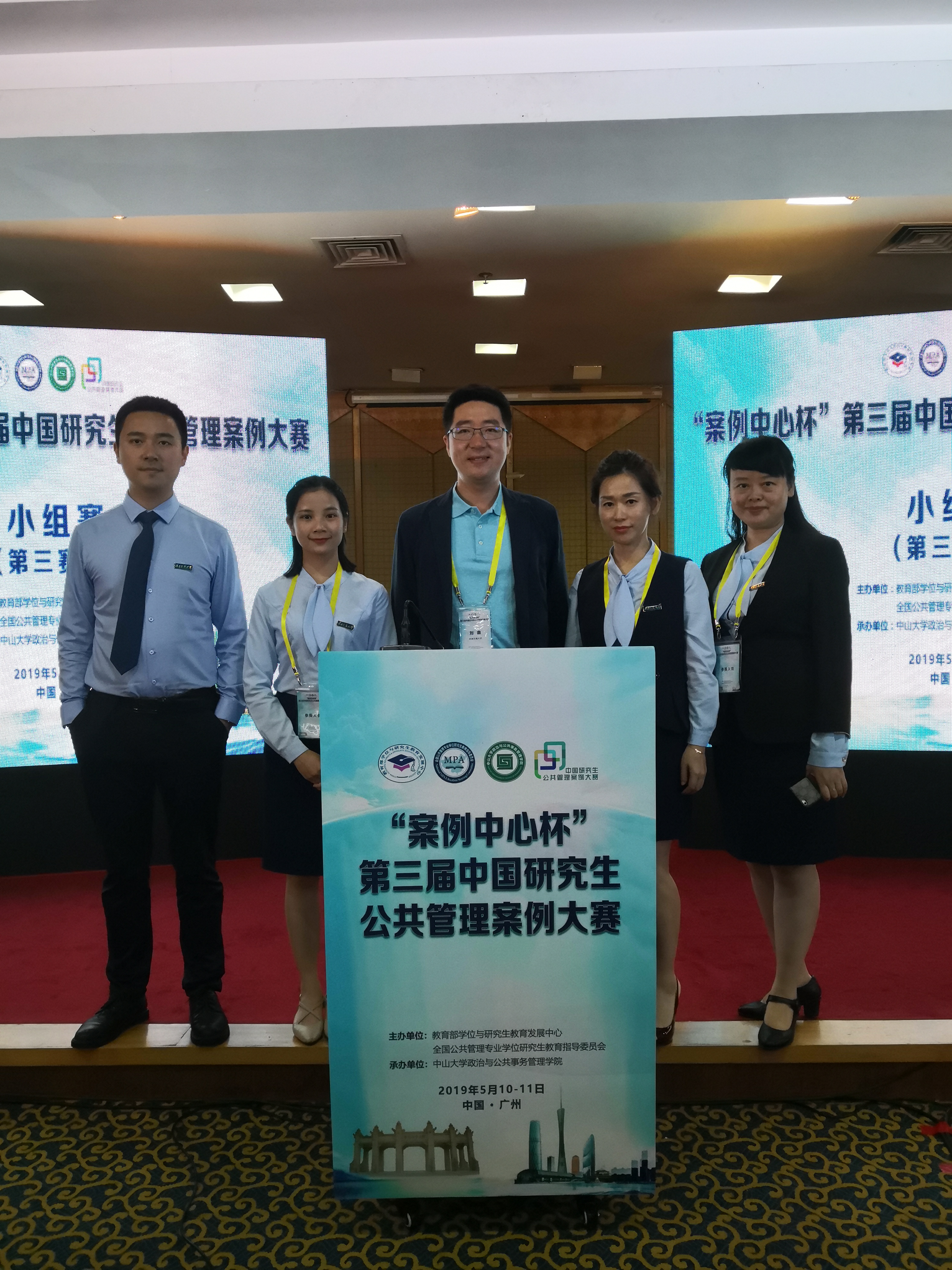 2019年5月11日,“案例中心杯”第三届中国研究生公共管理案例大赛在广州中山大学隆重举行,我院代表队喜获佳绩。由刘鑫老师指导,我院肖敏、李婷婷、罗林、侯东东四位同学组成的“科技小岗村”代表队,从全国187所MPA培养院校的1106支参赛队伍中脱颖而出,代表太阳集团tcy8722首次进入全国32强。在5月11日广州中山大学举行的案例大赛决赛现场,斩获大赛三等奖!