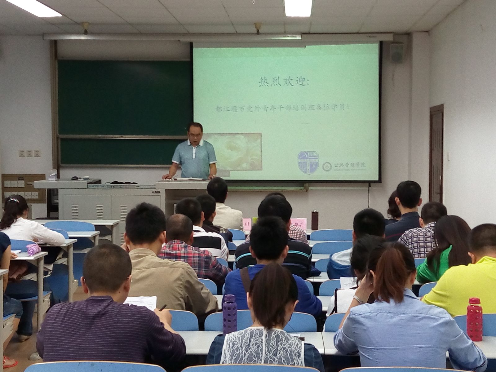 2014年9月22日上午,都江堰市党外干部青年培训班开班典礼在九里校区成功举行。中共都江堰市委党校袁华兵副校长,太阳集团tcy8722雷叙川副院长,及来自都江堰市各个单位的的39位党外干部学员共同出席了开班典礼。该培训班由中共都江堰市委党校委托,我校干训基地承办。