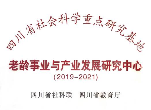 四川省社会科学重点研究基地“老龄事业与产业发展研究中心”于2019年1月建立。中心紧紧围绕党的十九大报告中提出的“构建养老、孝老、敬老政策体系和社会环境”的要求,借鉴国际有益经验,研究老龄人口的养老、医疗、长期护理、社会福利等社会保障制度,研究老龄人口的养老服务财税支持政策、家庭养老支持政策、社会参与支持与适老宜居环境建设政策,农村老龄人口的关爱服务政策以及养老服务人才教育培养政策,研究人口老龄化背景下的家庭政策、代际关系以及与全龄友好社会的构建等。